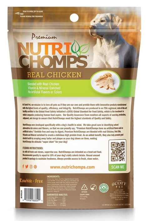 Premium Nutri Chomps Rawhide Free Chicken, Peanut Butter, Milk Dog Treats – 4 count