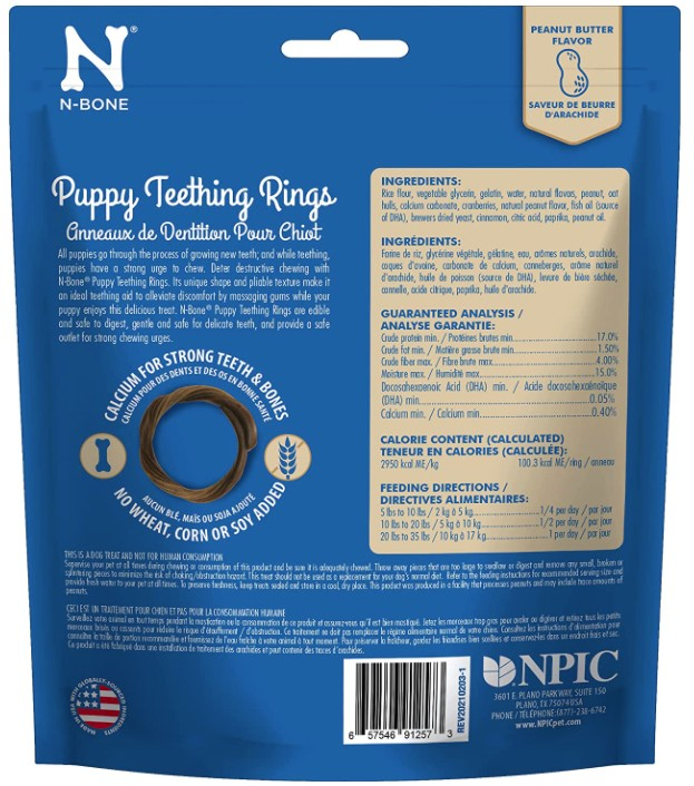 N-Bone Puppy Teething Rings Peanut Butter Flavor – 6 count