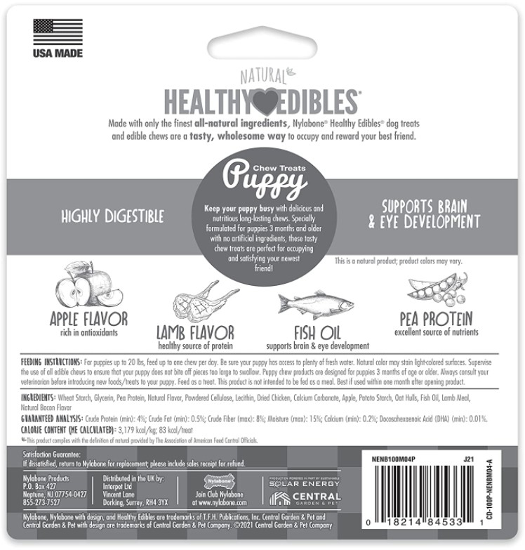 Nylabone Natural Healthy Edibles Puppy Chew Treats – Lamb & Apple Flavor – 4 Pack