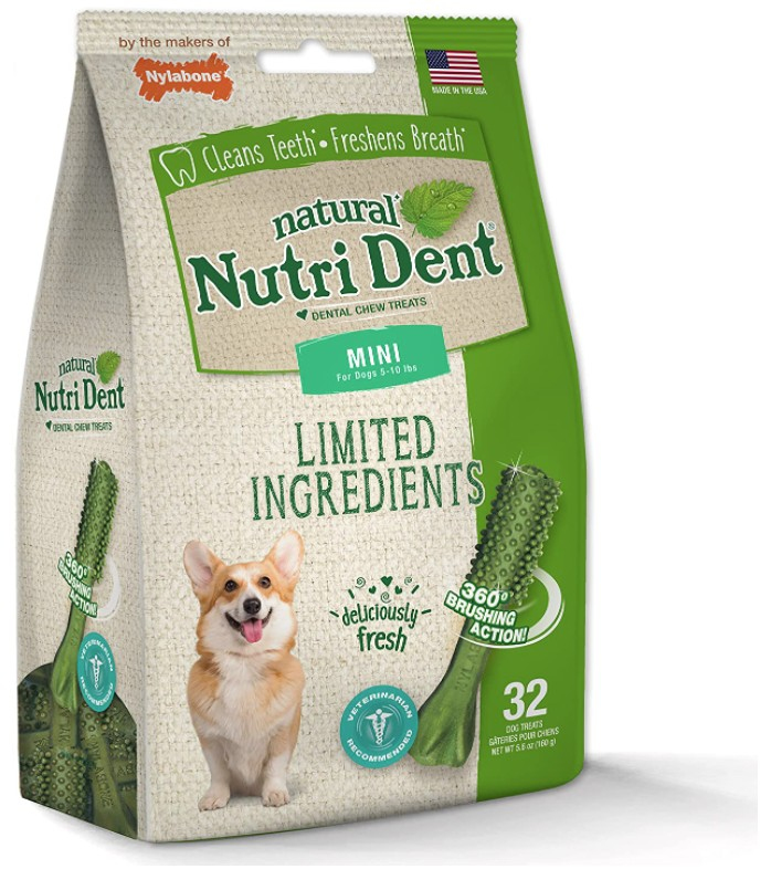 Nylabone Natural Nutri Dent Fresh Breath Dental Chews – Limited Ingredients – Mini – 32 Count