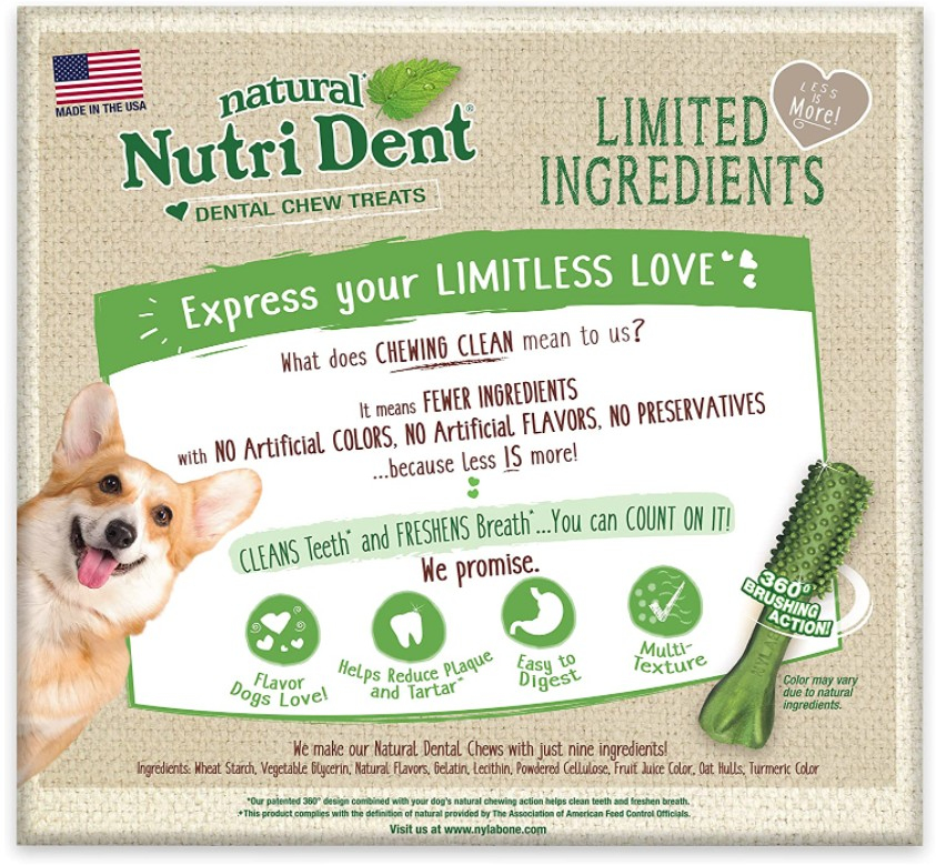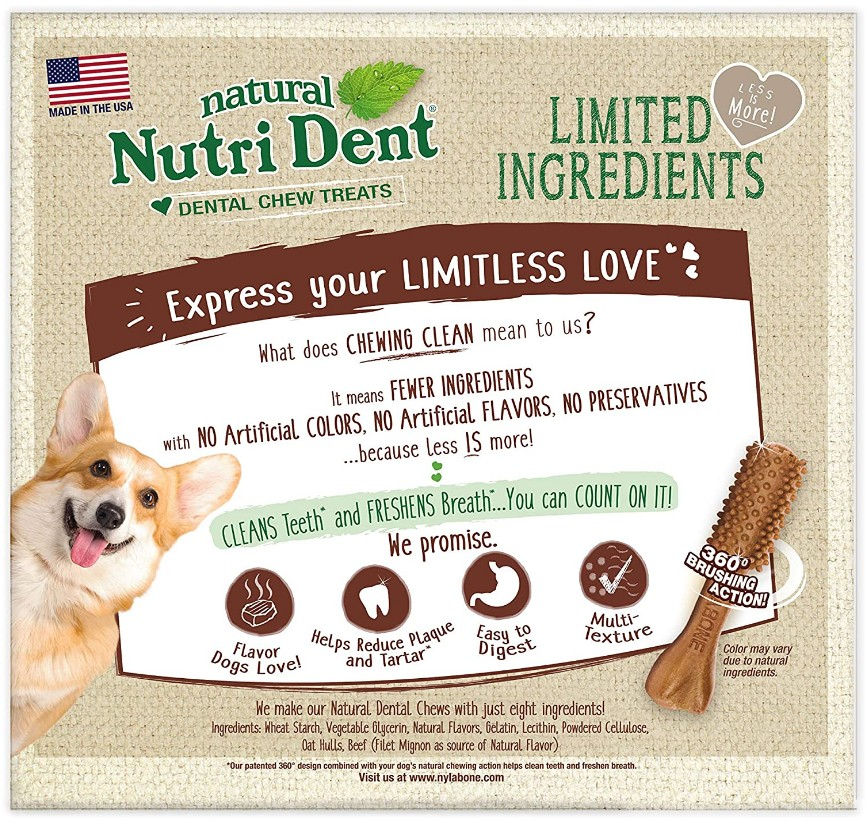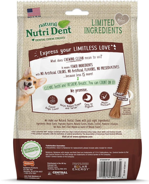 Nylabone Natural Nutri Dent Filet Mignon Dental Chews – Limited Ingredients – Small – 64 count