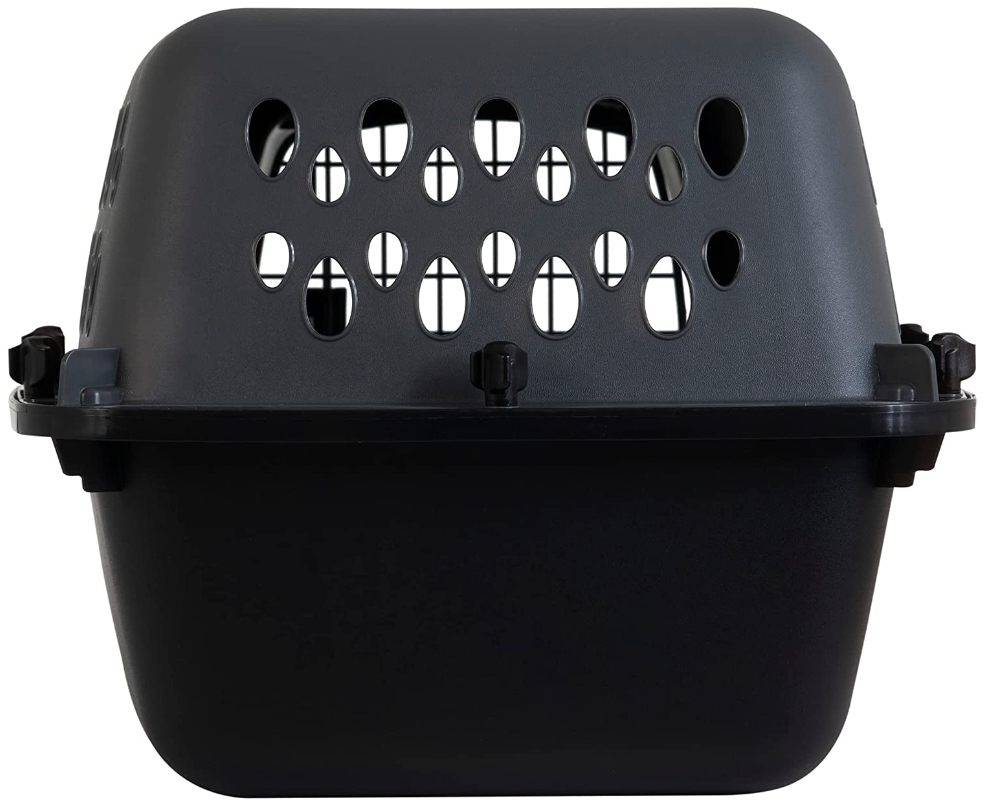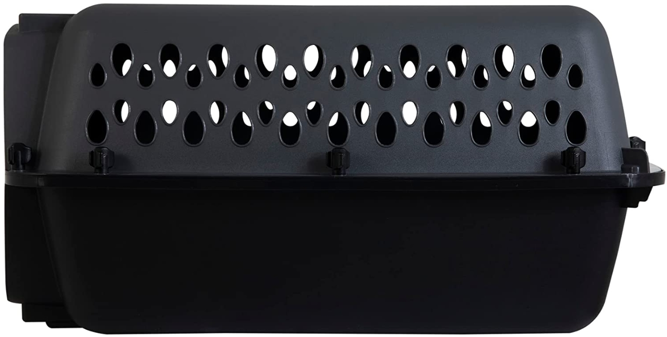 This traditional pet porter features durable wire door to keep your dog securely contained, made of heavy duty plastic shells with eco-friendly plastic. Also side & back ventilation holes to promote healthy air flow. Meets most airline requirements.