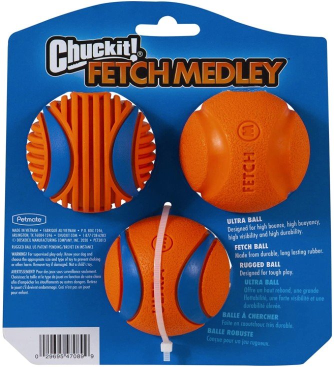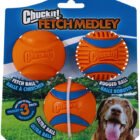 Give your dog options during a game of fetch with Chuckit!’s Fetch Medley Gen 3. This medley of premium fetch balls includes the classic Fetch Ball, the popular Ultra Ball, and the new Rugged Ball. Designed just for fetch, the classic fetch ball features a high bounce when thrown that helps keep dogs engaged in play. The number 1 selling Ultra Ball is designed to have high buoyancy and high durability for land or water play. The new Rugged Ball is designed for rough play and has unique ridges that make it easy to grab and help keep teeth clean. Sold in a pack of three, each ball is sized medium (2.5″ diameter) and can be used with any medium Chuckit! launcher. Your dog will love the variety of fetch balls you to choose from.
