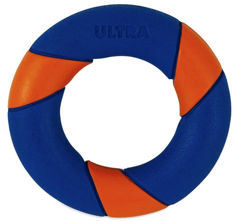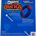 Take fetch up a notch with the Chuckit! Ultra Squeaker Ring. Designed to engage your dogs natural chase instinct, the Ultra Squeaker Ring has a unique topspin action design that causes it to erratically bounce, zig-zag, and hop on the ground just like a real game, encouraging your dog to give chase. When caught, the squeaking sound rewards your dogs instinctual curiosity. Use the Chuckit! RingChaser Launcher to throw the Ultra Squeaker Ring further during playtime. Made from durable rubber, the Ultra Squeaker Ring is gentle on your dogs mouth and built to last making it the ultimate chase and fetch toy