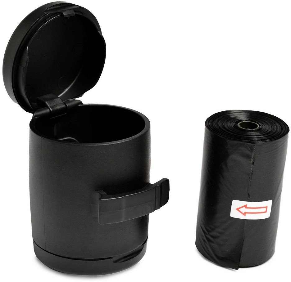 - Holds 1 standard waste pickup bag roll or your dogs favorite treats