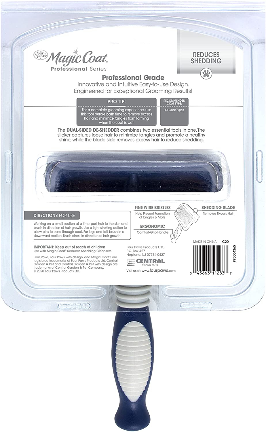 - Combination slicker brush and shedding blade reduce shedding for a freshly groomed look