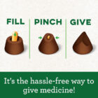 - PINCH: Using the same hand to hold the Pill Pockets Treat, squeeze the top half closed.