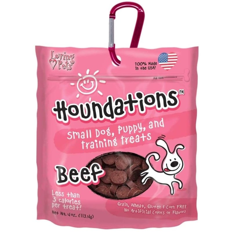 Loving Pets Houndations Small Dog, Puppy and Training Treats pack a lot of flavor into a little bite! Houndations are made from 100% all natural ingredients and contain less than 3 calories per treat, making them perfect for regular training rewards.