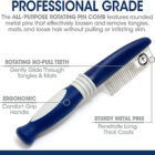 The Magic Coat Rotating Pin Comb by Four Paws removes tangles, mats, and loose hair without pulling. Its stainless steel, no-pull pins rotate as they move through your pets coat, preventing them from snagging and causing your pet discomfort or pain during grooming.
