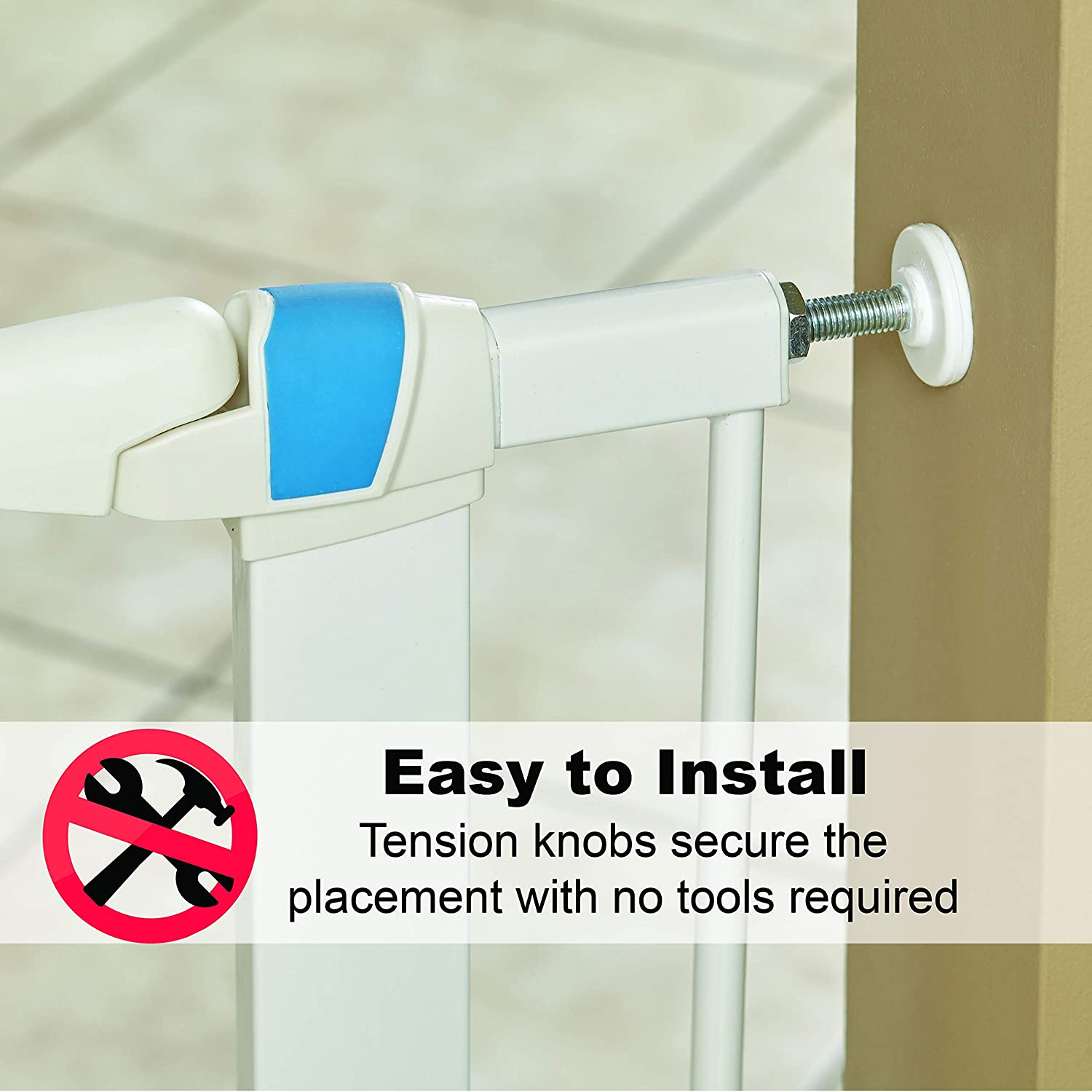 Forget stubbing your toe running into your gate or waking everybody up by turning on the lights. The Glow in the Dark Steel Pet Gate by MidWest has phosphorescent glow strips to allow you to see your gate’s position and locate the latch at night. This gate is constructed of durable steel with an attractive graphite finish. Wall-safe pressure mounts keep your gate tightly and securely in place. The door design allows you to easily open the gate with one hand and automatically closes and locks behind you. The 19-inch-wide door swings in either direction for easy walk-through.