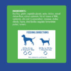 Ingredients: Rice flour, gelatin, vegetable glycerin, water, chicken, natural chicken flavor, calcium carbonate, fish oil (source of DHA), cranberries, citric acid (a preservative), cinnamon, choline chloride, l-lysine, dried Bacillus coagulans fermentation product, turmeric.