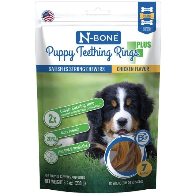Puppy Teething Rings Plus is formulated for a longer-lasting chew experience to satisfy strong chewers and is powered by GanedenBC30, a natural probiotic that may support immune and digestive health. Plus more protein, calcium, and DHA for healthy teeth, bones, and brain development.