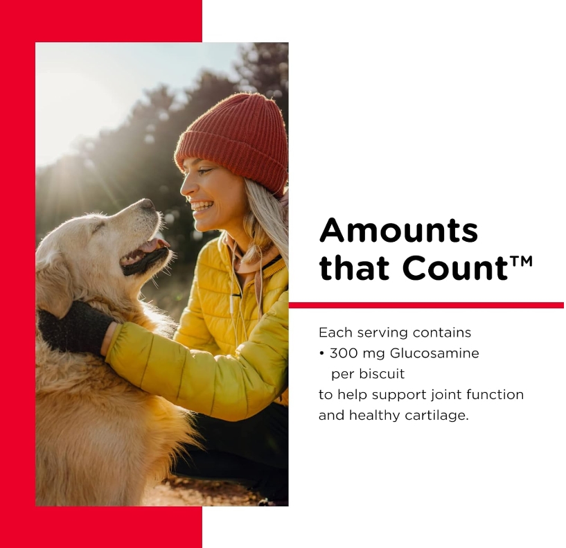 Glucosamine HCL is the chief building block for making cartilage, and is highly beneficial for maintaining joint health and supporting mobility and activity in dogs of all ages. Extra Strength Biscuits are recommended for large, active dogs over 60 lbs.