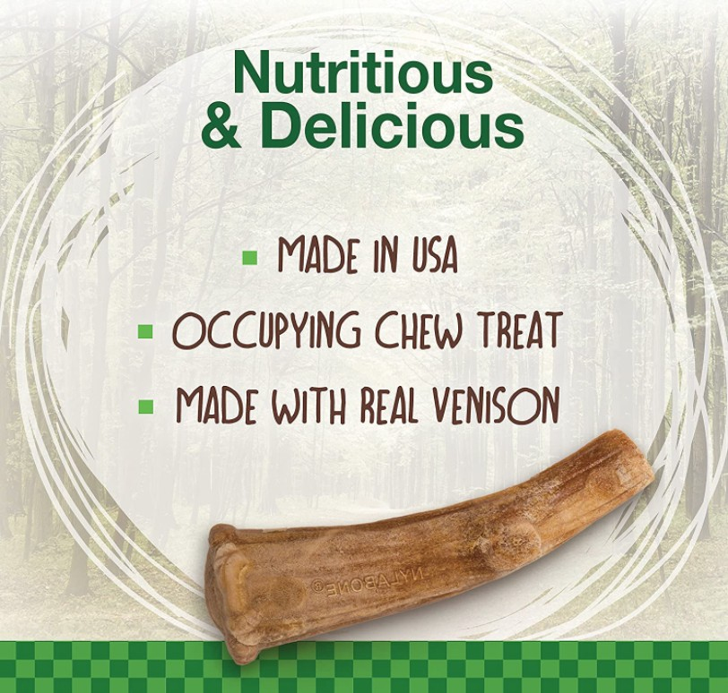 Nylabone Healthy Edibles Wild Antler Chews are made with real venison to provide an authentic chewing experience for your dog. These chews are completely edible, highly digestible, and made with limited ingredients that provide a cleaner and safer chew than real antlers.