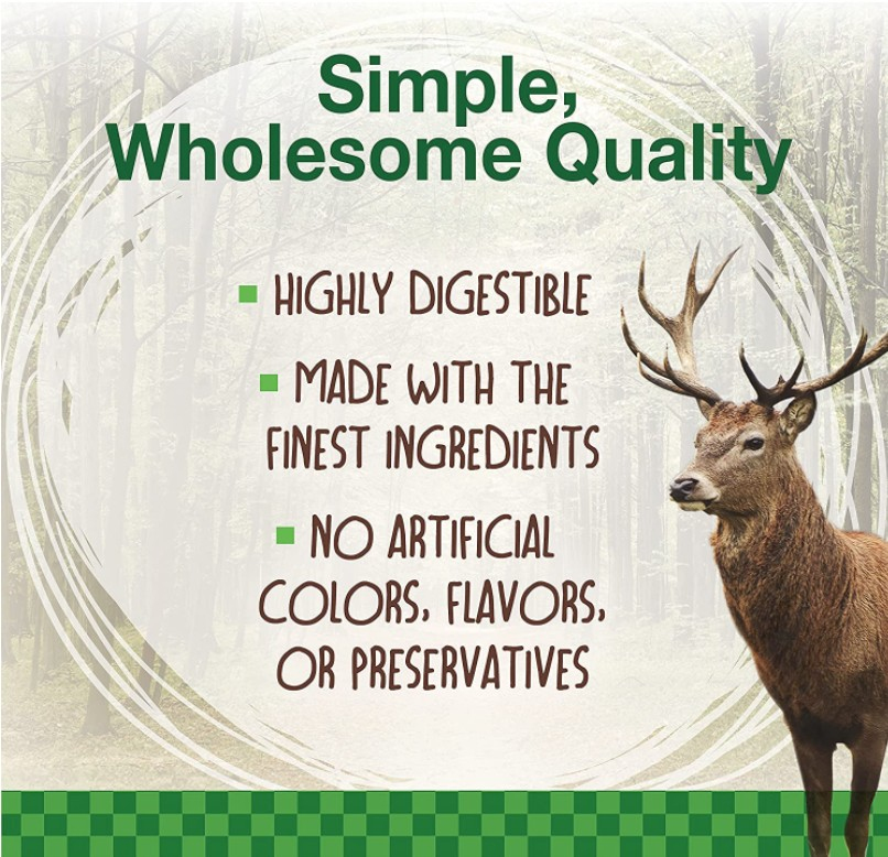 Ingredients: Wheat Starch, Vegetable Glycerin, Natural Flavor, Pea Protein, Venison, Rice Flour, Potato Starch, Powdered Cellulose, Lecithin, Oat Fiber, Calcium Carbonate, Sea Salt, Citric Acid, Mixed Tocopherols.