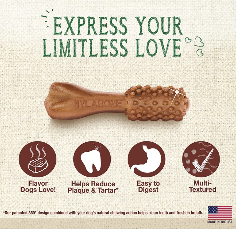 Note: Formerly sold as Nylabone Nutri Dent Complete Filet Mignon Dental Chews, now with a healthy, natural formula.