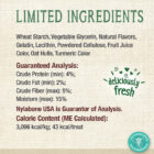 Ingredients: Wheat Starch, Vegetable Glycerin, Natural Flavors, Gelatin, Lecithin, Powdered Cellulose, Oat Hulls, Alfalfa Extract (Source of Chlorophyll)
