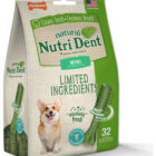 Cleaning your dogs teeth takes commitment. Why not let him help Nutri Dent Limited Ingredients Dental Chew Treats naturally freshen your dogs breath and clean his teeth with 360-degree scrubbing nubs and only 8 simple ingredients. They are easy to digest, promote your dogs well-being with natural ingredients, and contain no artificial colors, flavors, or preservatives. They clean like a brush and taste like a treat!