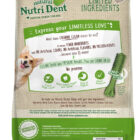 Cleaning your dogs teeth takes commitment. Why not let him help Nutri Dent Limited Ingredients Dental Chew Treats naturally freshen your dogs breath and clean his teeth with 360-degree scrubbing nubs and only 8 simple ingredients. They are easy to digest, promote your dogs well-being with natural ingredients, and contain no artificial colors, flavors, or preservatives. They clean like a brush and taste like a treat!