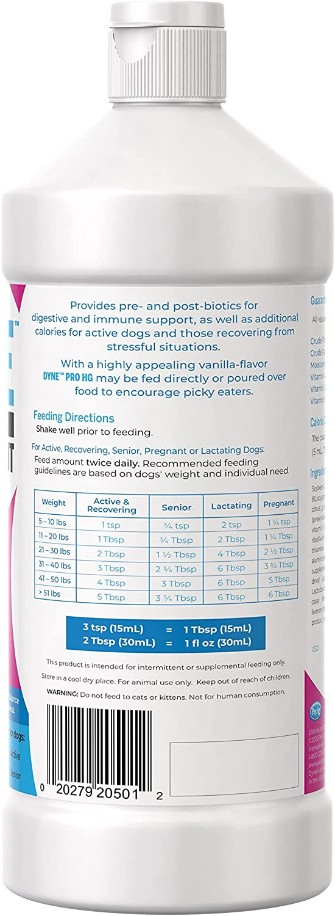 Sometimes dogs need a little extra nutritional support to keep them looking and feeling their best. Thats where Dyne Pro HG comes in. It provides additional calories and GI support to active, pregnant, lactating, or senior dogs, as well as those recovering from stressful situations. Simply pour over food and watch them enjoy.