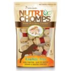 Premium Nutri Chomps Chicken Wrapped Knots are rawhide-free dog chews made with oven-baked pork skin and wrapped with real chicken meat. Nutri Chomps chews are completely edible, rich in protein, and fortified with six essential vitamins and minerals to support your dogs overall health.