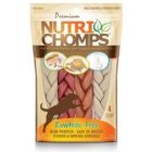 Nutri Chomps Premium Rawhide Free Chews offer dogs a tough and tasty treat that won’t mess with their digestion. Made with real chicken and porkskin, these braids are a great source of protein, vitamins, and minerals, with real chicken, milk, and peanut butter flavors dogs love. What are you waiting for Its time to chomp!