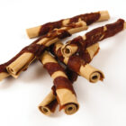SmartBones Mini Chicken-Wrapped Sticks for dogs are made with real chicken and wholesome vegetables. They have a delectable chicken layer wrapped around the outside for a scrumptious taste dogs can’t resist. These chews are enriched with vitamins and minerals and are perfectly sized for your dog. They’ll love the vegetable outside and delicious chicken inside and outside.