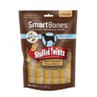 SmartBones Stuffed Twistz with Real Peanut Butter provide all the benefits of tough rawhide chews with none of the drawbacks! These tasty vegetable and chicken twists are stuffed a delicious pork-flavored center chew and made with real peanut butter for a taste no dog can resist.