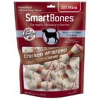 SmartBones chews have all the benefits of a rawhide chew WITHOUT the RAWHIDE! No-rawhide SmartBones chews are made with real chicken, beef, bacon, and cheese or sweet potato and wholesome VEGETABLES for a scrumptious taste dogs can’t resist! Many veterinarians are concerned with the potential health risks associated with dogs consuming rawhide. No-rawhide SmartBones Mini chicken-wrapped chews for dogs are made with real chicken and wholesome VEGETABLES. They have a delectable chicken layer wrapped around the outside for a scrumptious taste dogs can’t resist. These chews are enriched with vitamins and minerals and are perfectly sized for your dog. They’ll love the vegetable outside and delicious chicken inside and outside. These fun-shaped treats are easy to digest, making them chews both you and your dog can love!