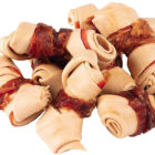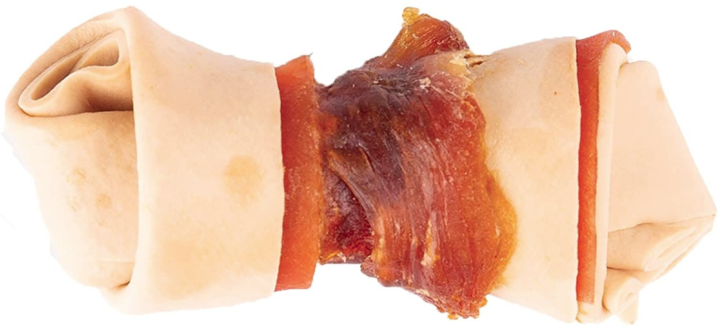 - REAL CHICKEN: Bone-shaped chews wrapped with chicken.